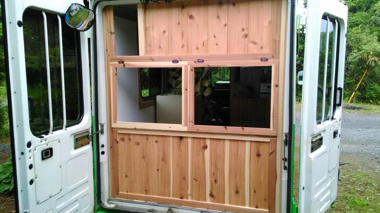 茂原のシンパカフェさんからキッチンカーにする後ろの壁?というか販売するための受け渡し口の製作の依頼を頂きました。決まり通りに壁を作らないとなかなか許可が下りないようです。お店の顔になる部分なので雰囲気良く仕上げたいところです。