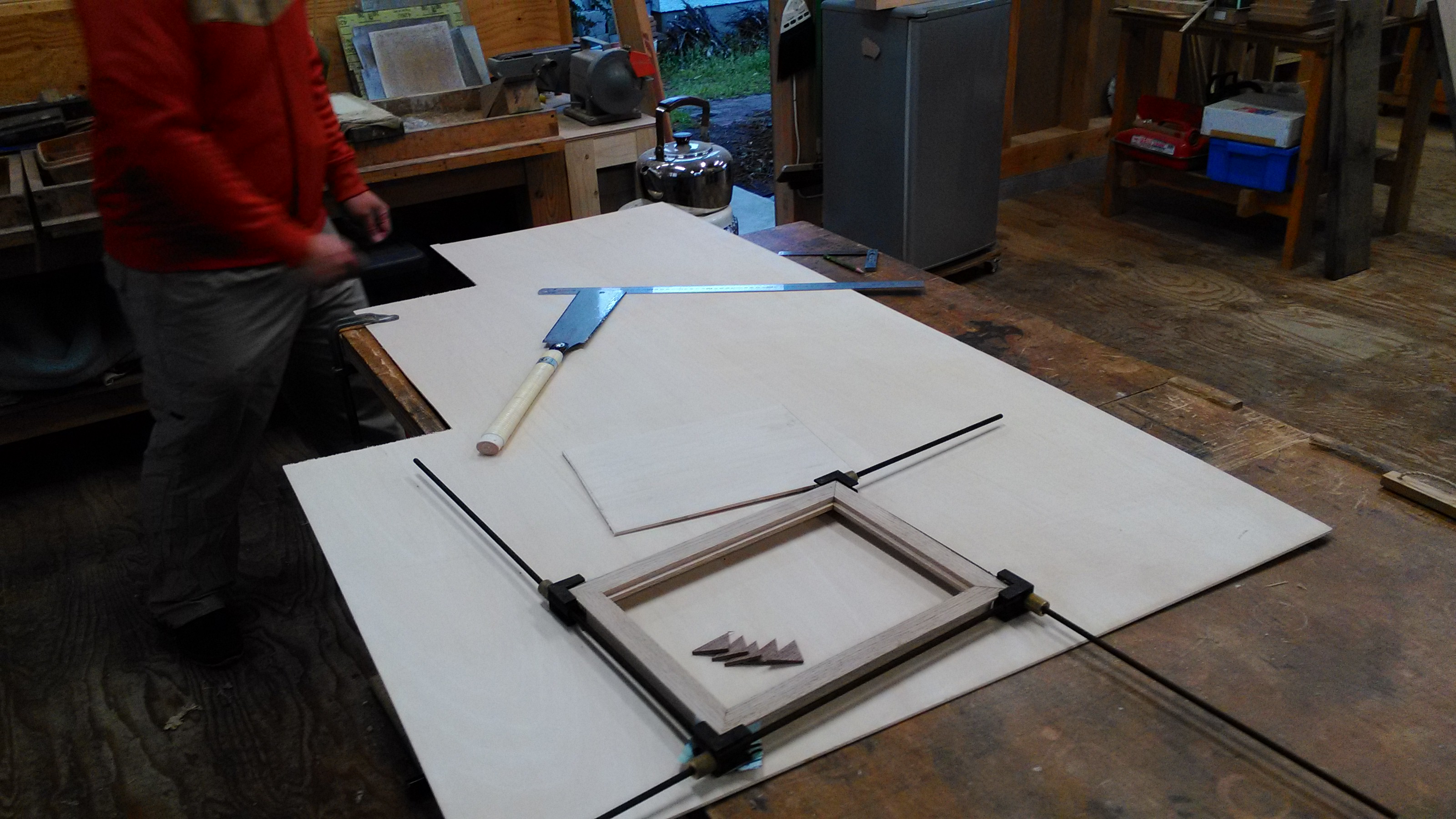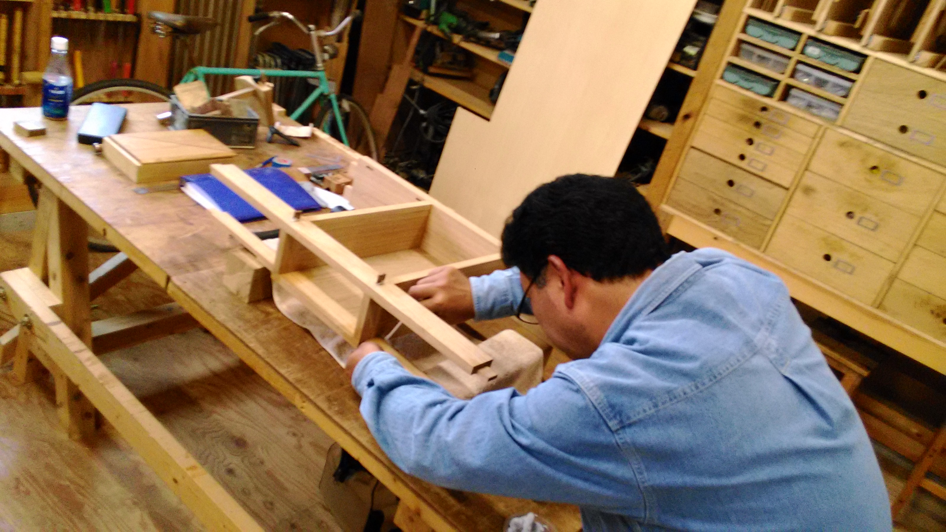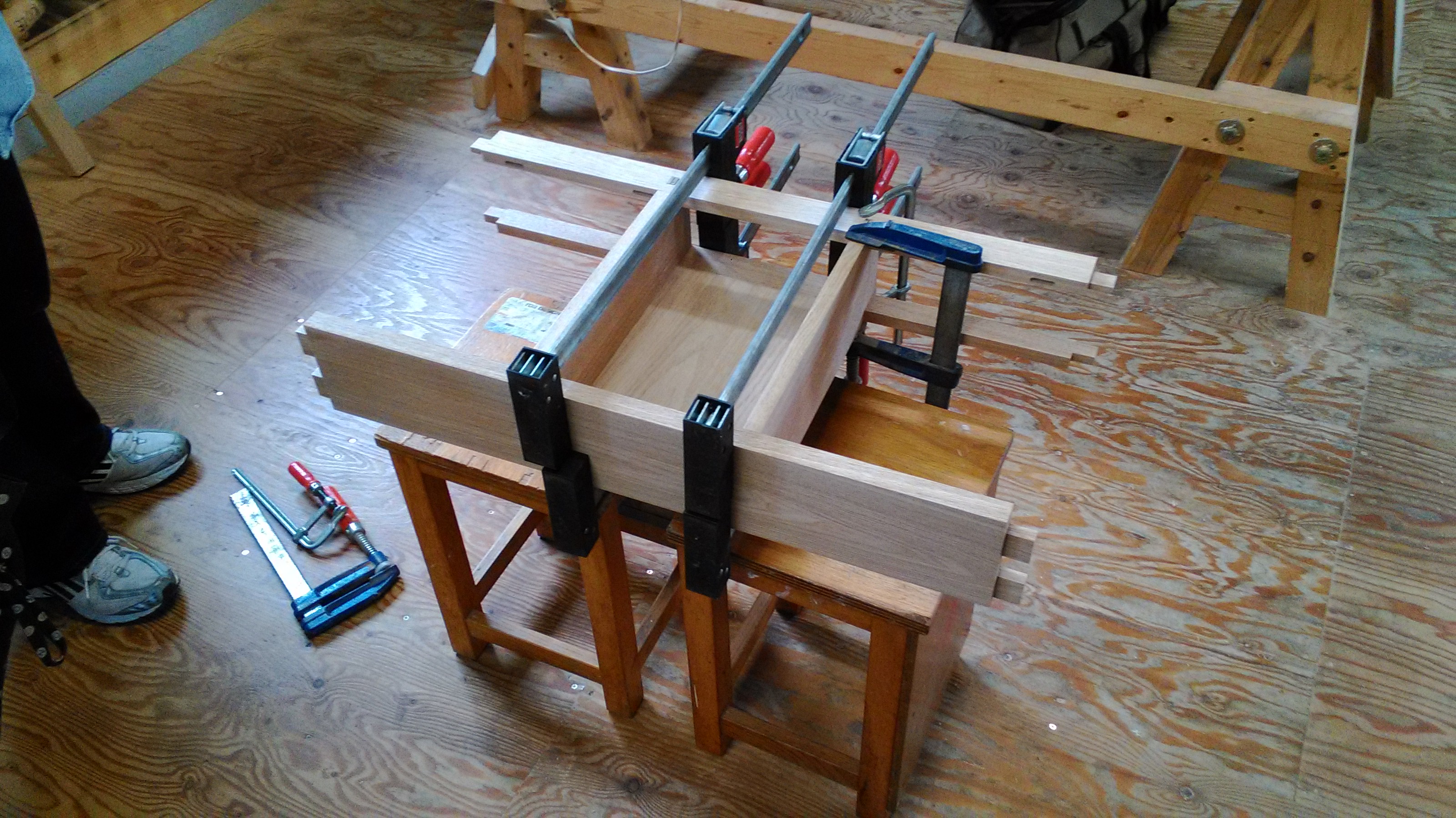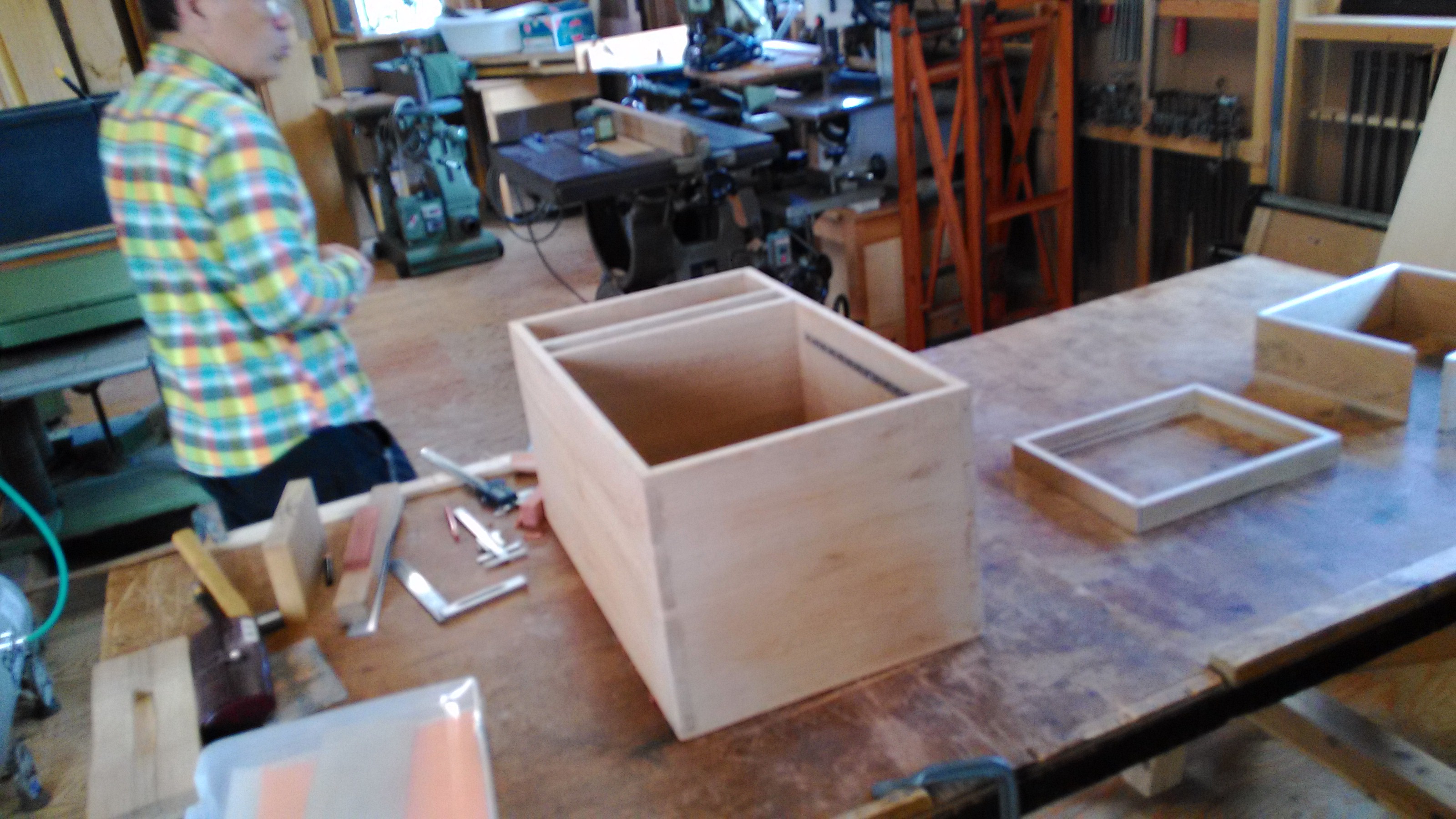 引き出し付きの机の引き出しをおさめる部分の組み立て。