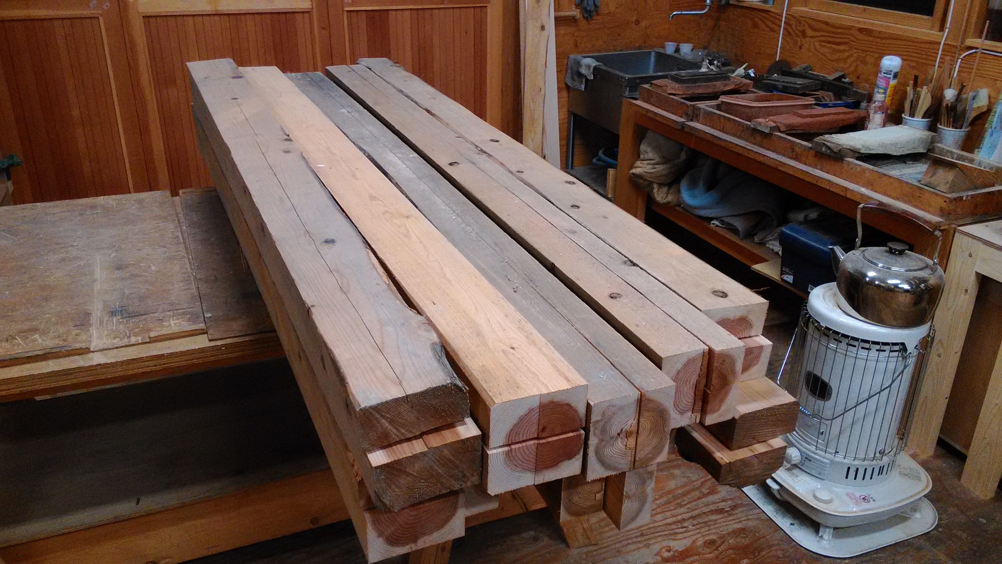 ある道具で製材するのですが、結構時間がかかりそう。でも良い材料なの出来上がりが楽しみです。