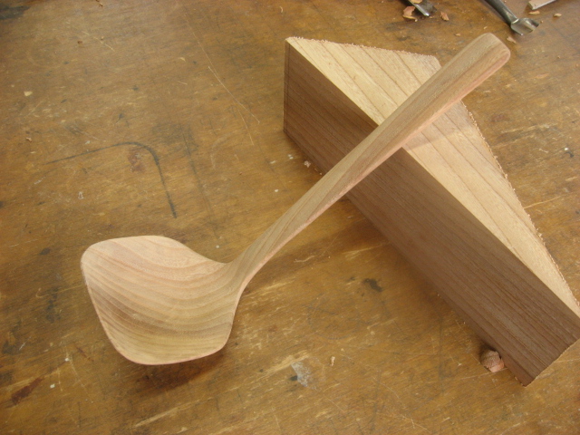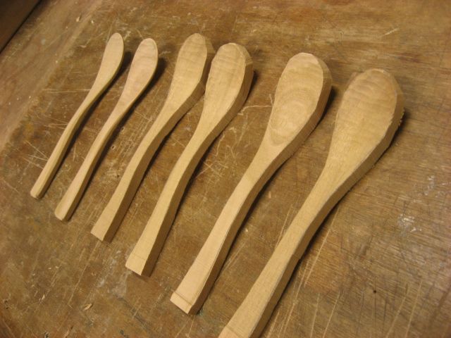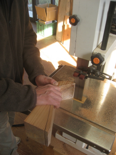 くぼみを削ってから帯鋸を使ってスプーンの形に、