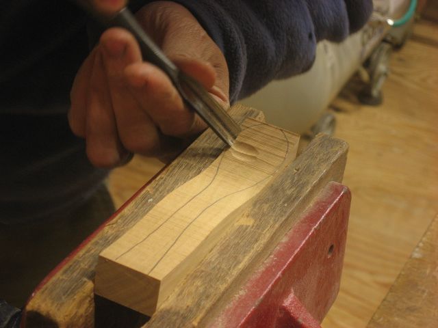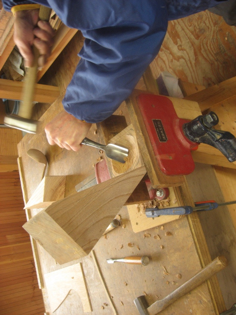 丸鑿ですくう部分を彫っています。