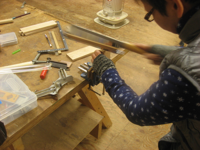 慎重に鋸入れします。