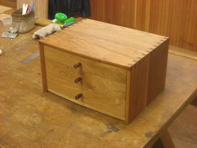 工房に置いてある木工の本にある3段引き出しを作りたいという事で、製作して頂きました。