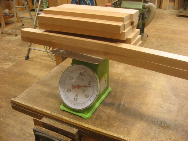 なるべく軽く作りたいので、製材したところで量りにかけてにました。