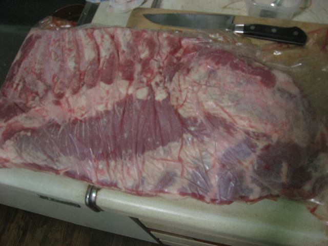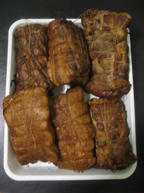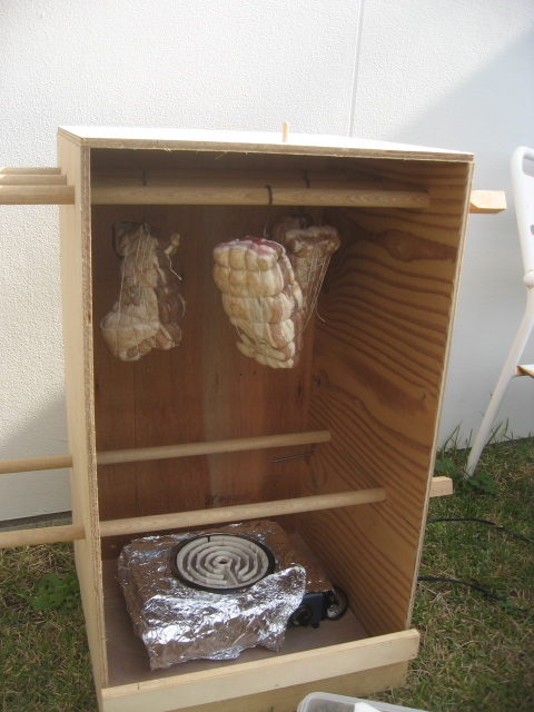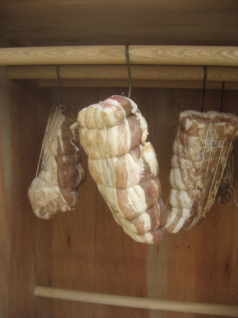 塩漬けしたバラ肉を塩抜き、脱水してスモークしました。