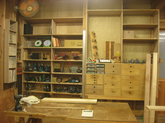 移った当初間に合わせ的に棚を作り、どうにか作業が出来る状態にしたのですが、どうも使い勝手や見栄えが悪いので少しずつ手直しをしています。