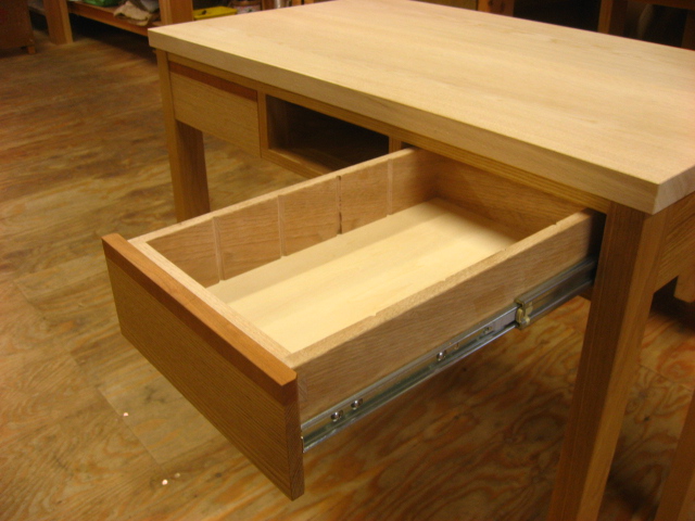 引き出しは左右に2杯、真ん中はフリーの収納スペース。