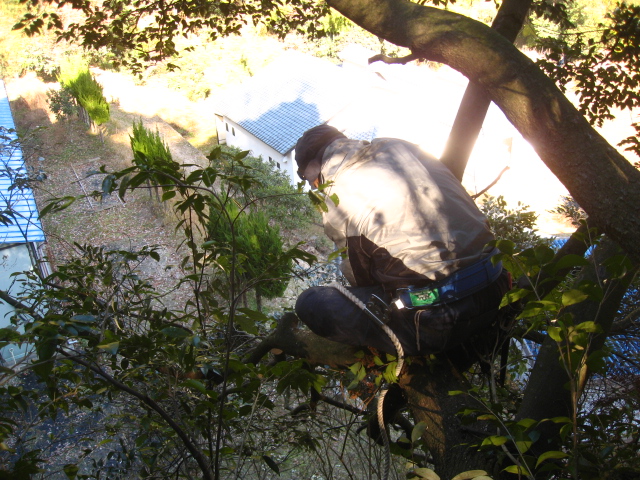 上で切って下からロープで引いて落とします。