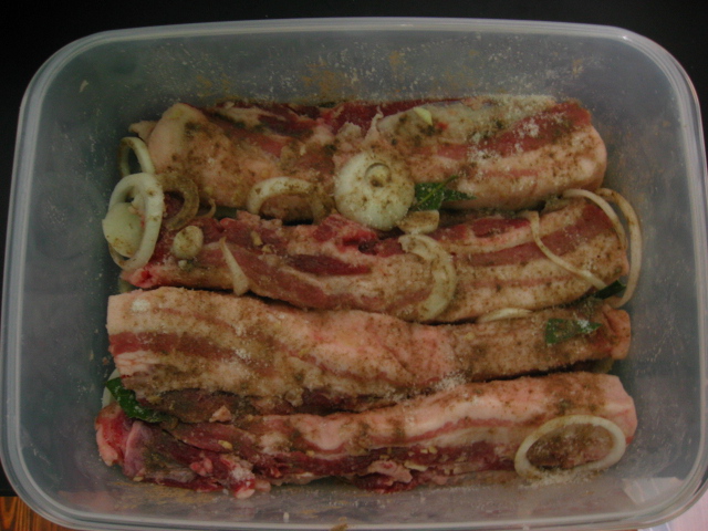 いろいろネットのレシピを参考に直接塩を塗り込む方法で塩漬けしました。