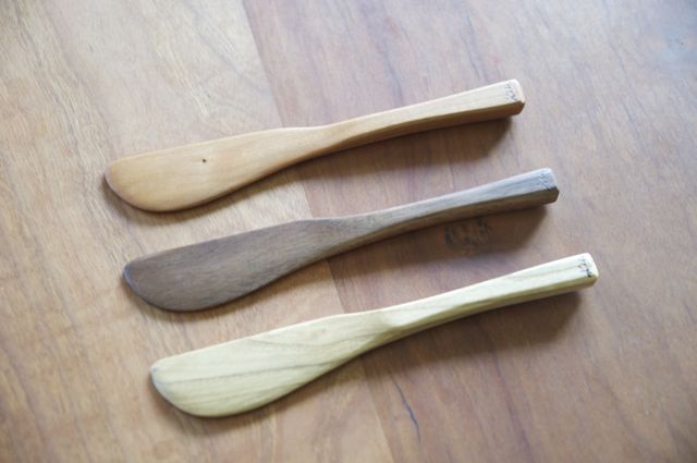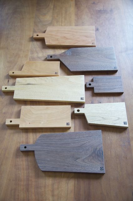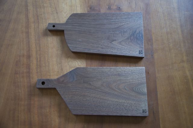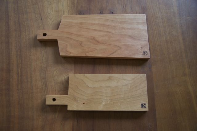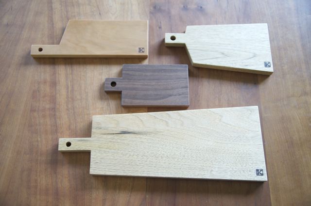 カッティングボード、端材や割れ節を取り除いた木材から作ります。