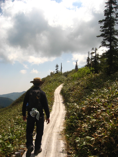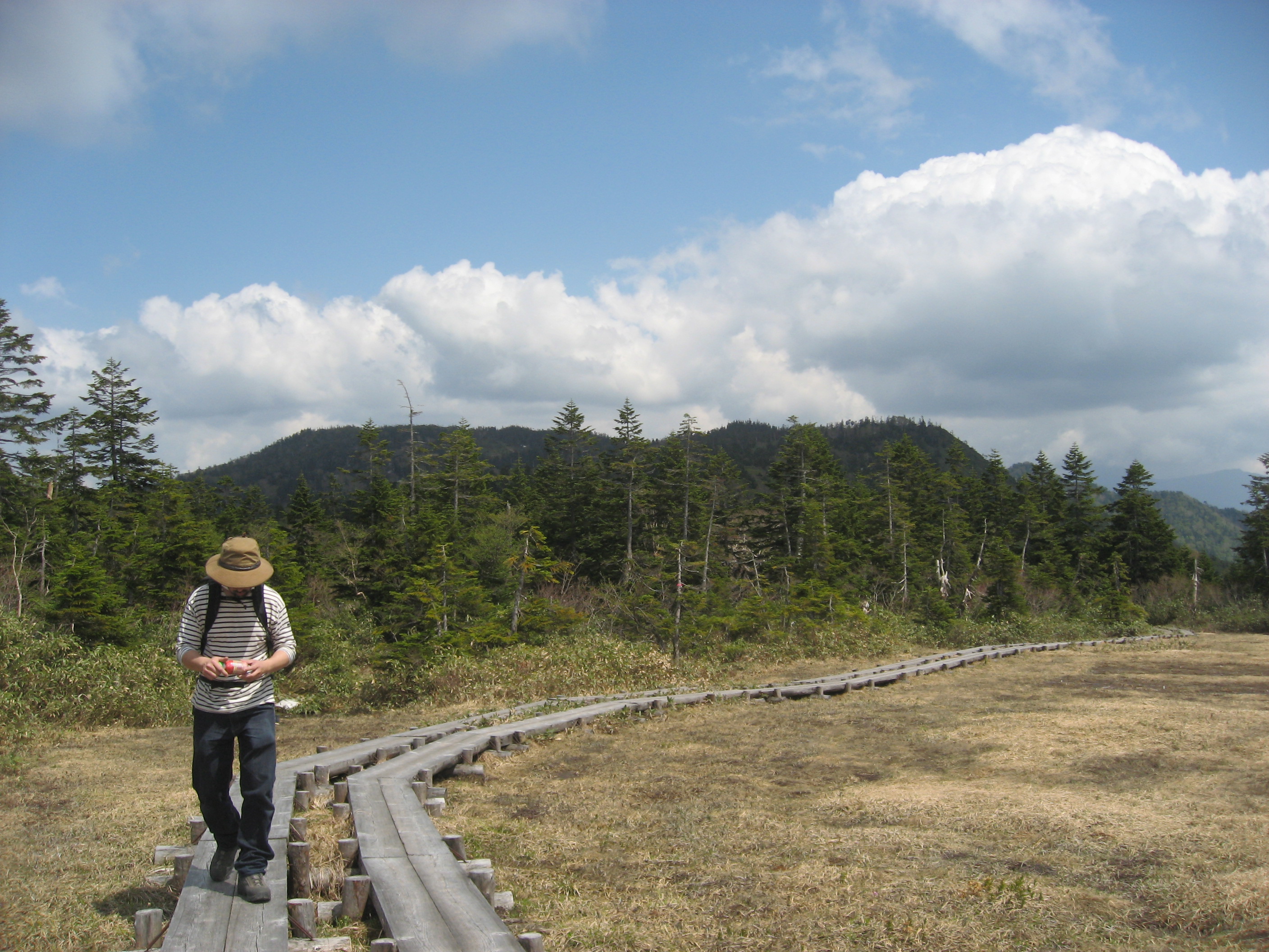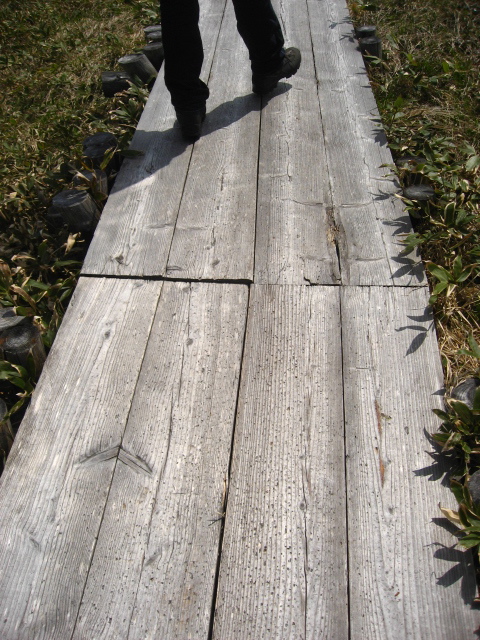 木道の板は半分に割って開いたブックマッチ(左右対称)に敷いてある箇所が結構ありました。