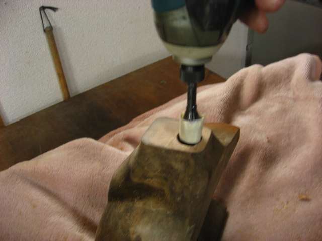先ずは本体の穴を少しだけ深くして、ホゾを深く入れられる様にします。