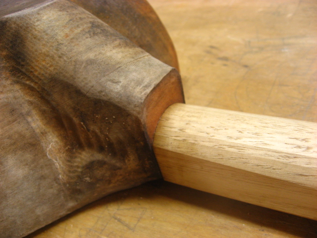 ホゾを玄翁でたたいて木を締めてホゾを小さくしていきます。