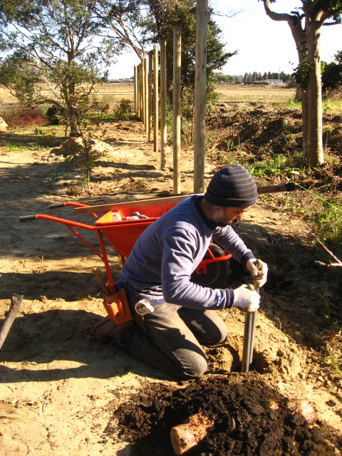 そのスコップで穴掘り作業中。