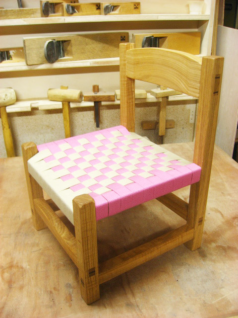 教室の生徒さん、日にちの振替でカッティンクボードのワークショップをやりながらで申し訳なっかたのですが、半年程製作していた子供椅子が完成しました!!