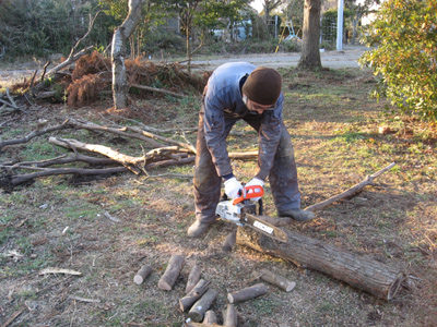 今日はストーブ用の薪を作りました。