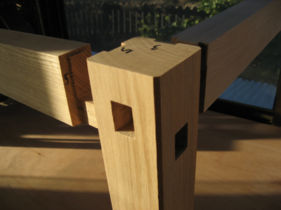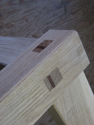 ホゾに楔を入れて仕上げた状態。